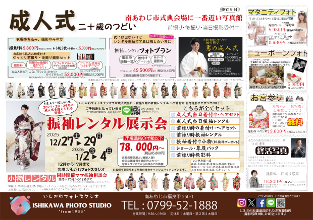 こんにちは♪いしかわフォトスタジオです。淡路島の南の端にて 1933年創業 3代にわたる写真館です。